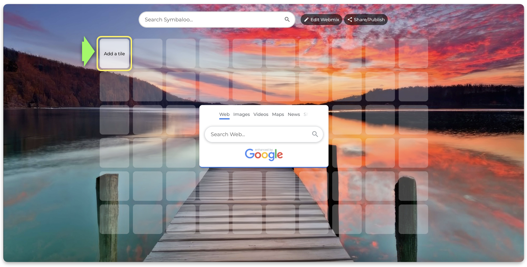 Add Tiles Adding Tiles is now easier than ever; you can click on the Edit Webmix button and then Add Tiles as shown in the picture below. You will see the options from left to right Websites - 1x1 Recommended - View Grid By clicking the Websites ...