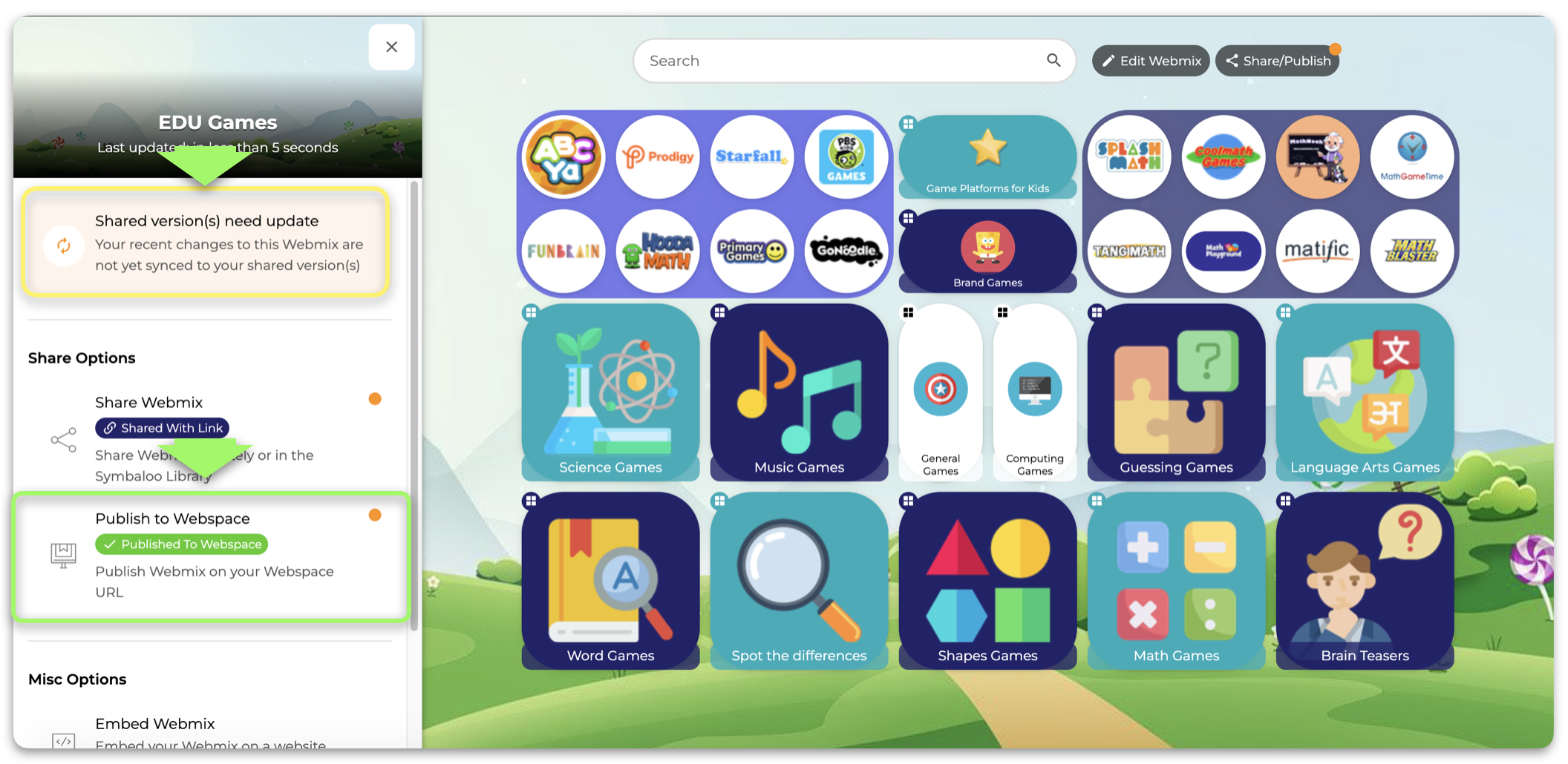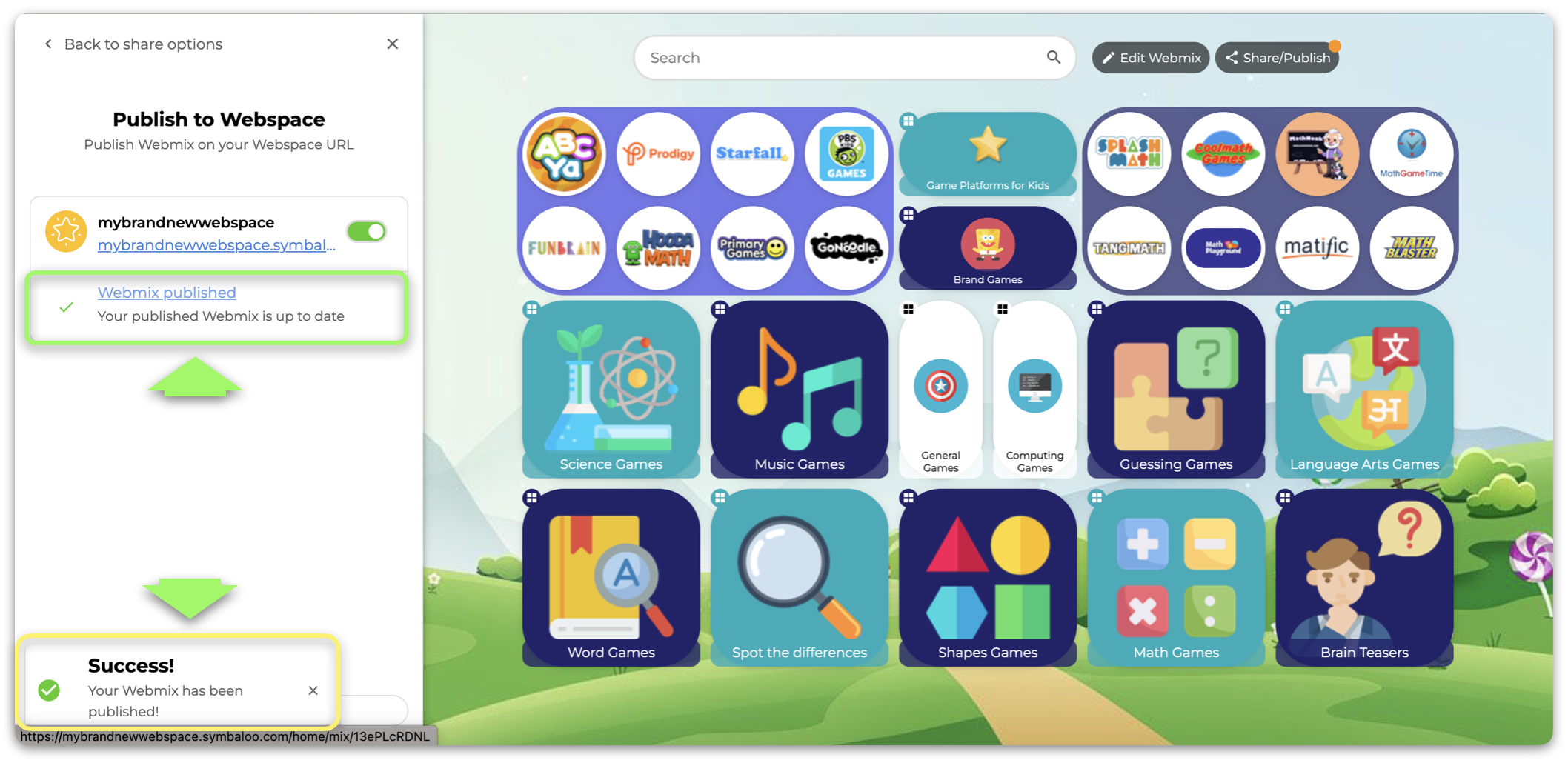 ? How to Publish a Webmix to a Webspace (Webspace Subscribers) Once you have created a Webspace, you can publish any of your Webmixes to make them publicly visible via your Webspace URL (e.g., yourname.symbaloo.com). This allows anyone who visits ...