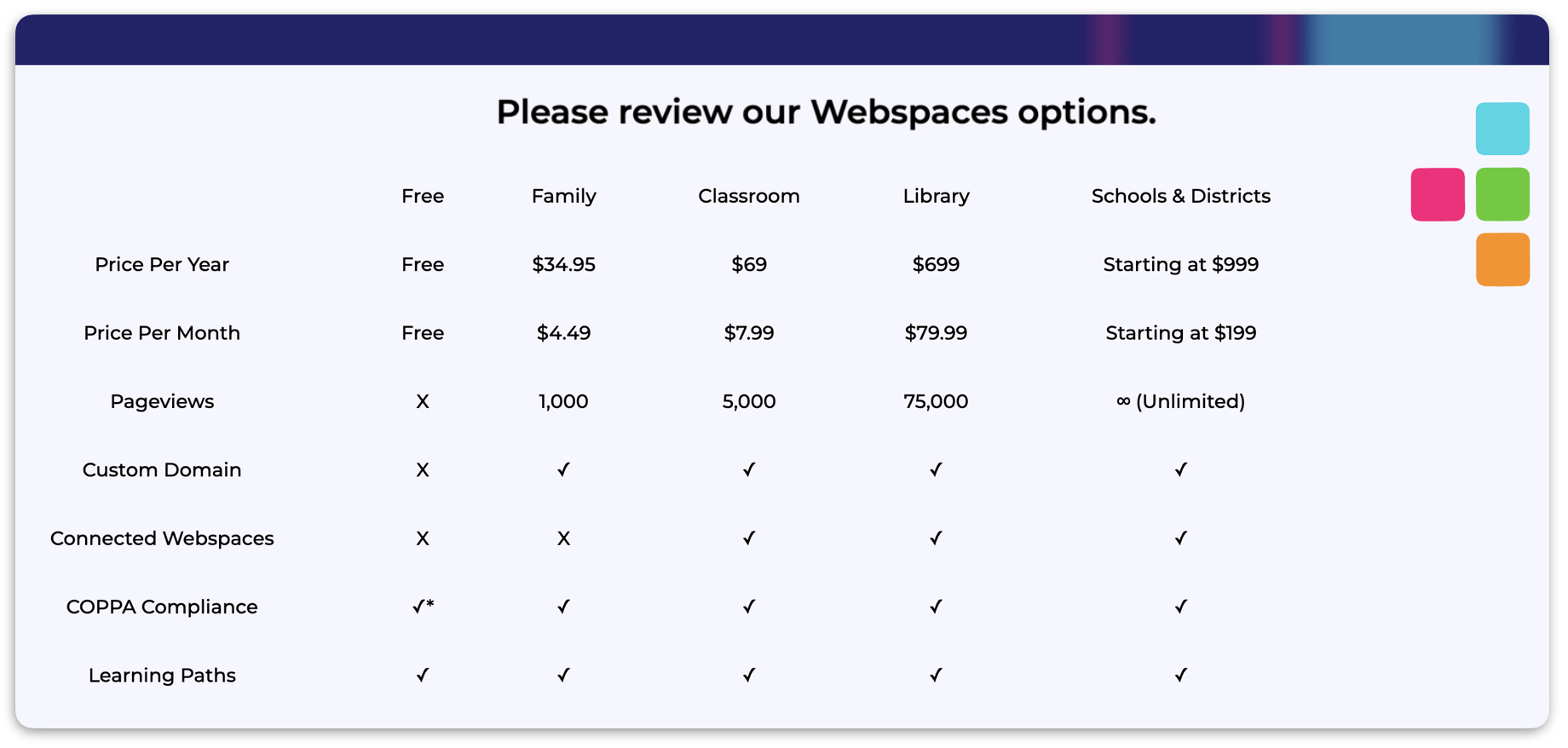Every Symbaloo user can create a free account and start with a Sponsored (ad-supported) Webspace. For more control and customization, our paid Webspace plans remove ads and unlock advanced features.